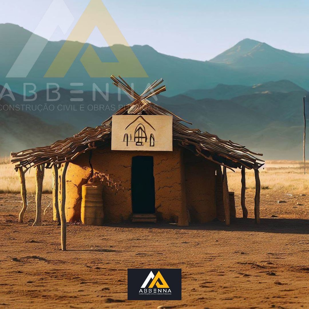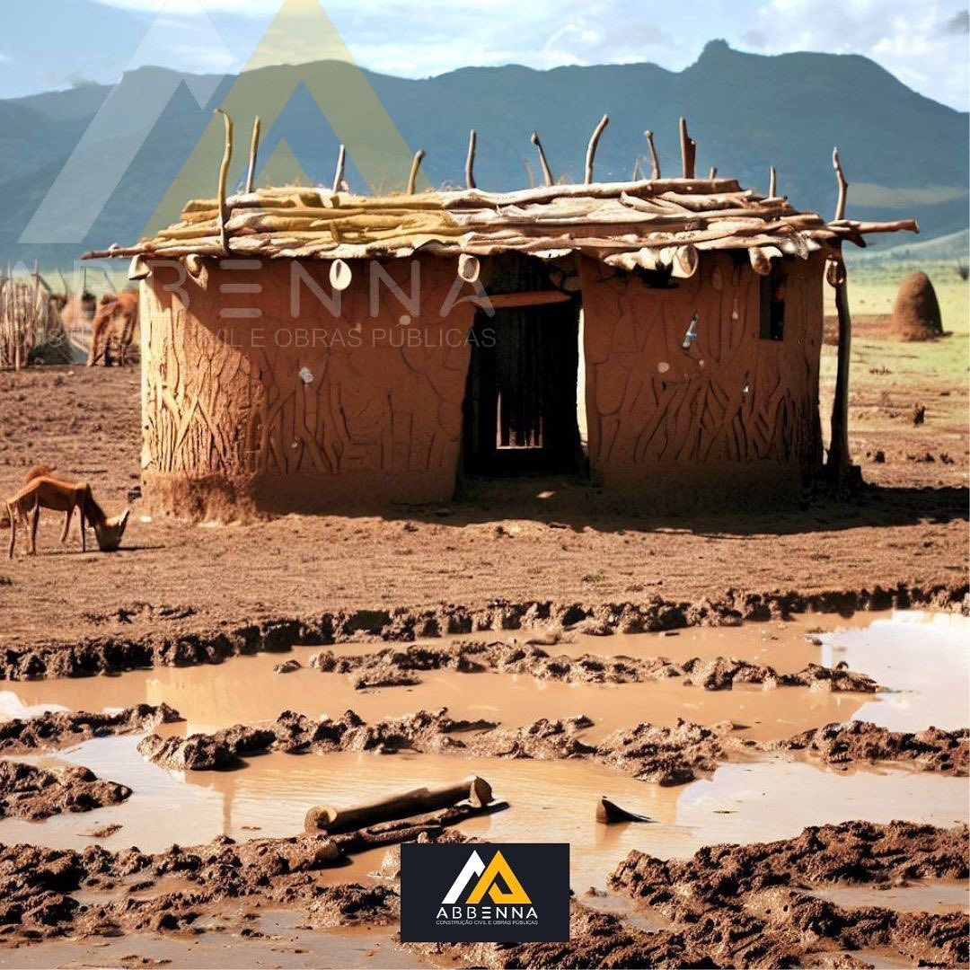Um projeto hiper-realista, destacando casas em zonas rurais construídas com materiais locais, como paus, argila, palha e folhas de palmeira. As residências possuem formas circulares ou retangulares, com telhados cônicos ou inclinados, adaptando-se perfeitamente ao ambiente e cultura local.